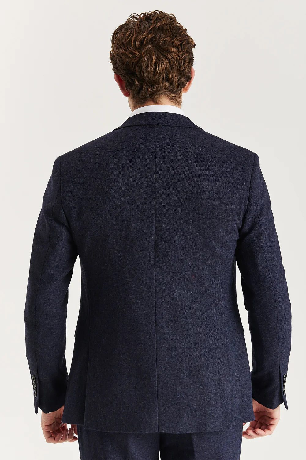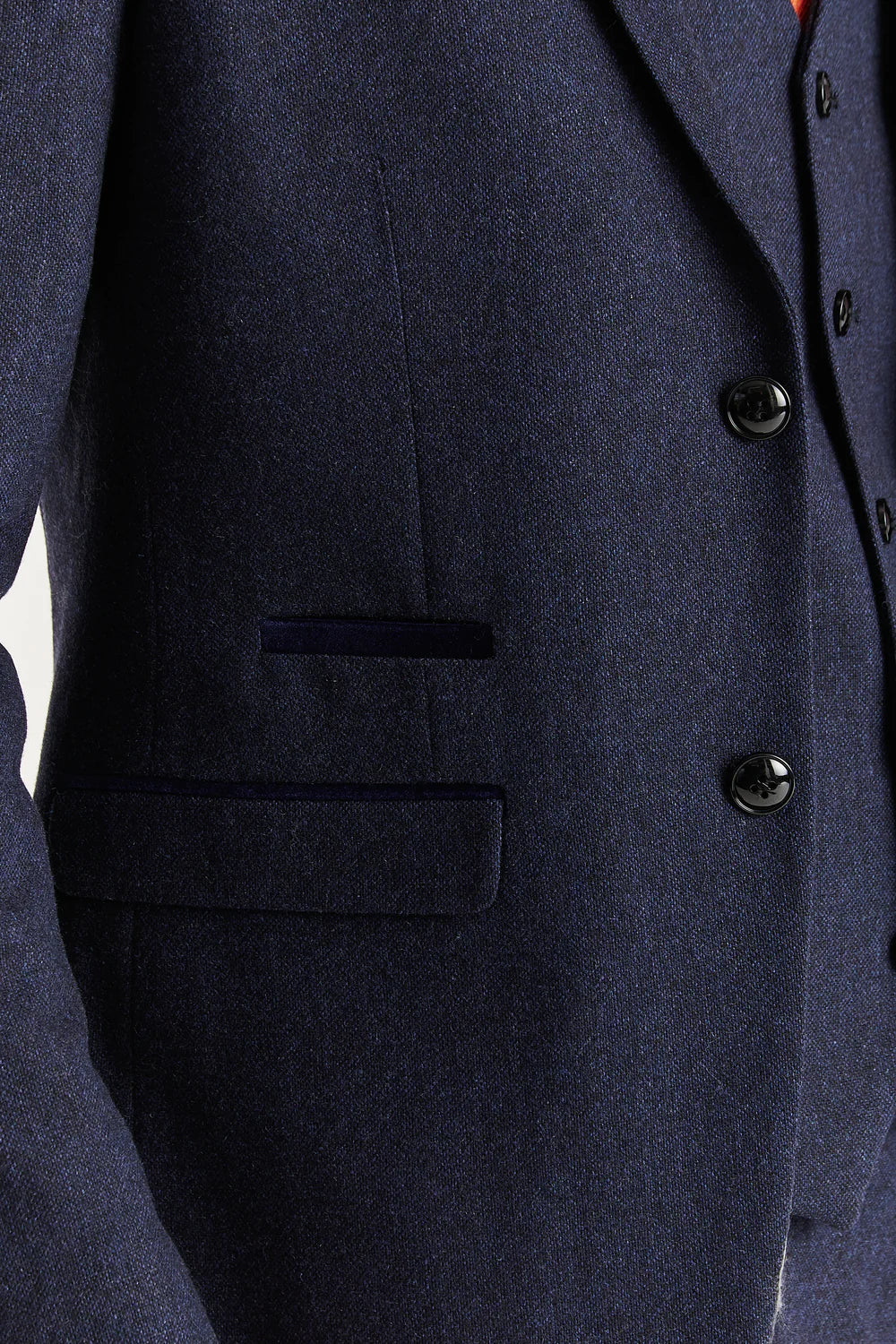 Introducing the Oscar Navy Tweed Suit, a masterclass in refined tailoring and elegance. Crafted to perfection, this timeless suit boasts a luxurious navy tweed that offers both style and sophistication. The suit is designed for those special occasions when you need to make an impression with your impeccable sense of fashion. The distinguished silver and navy lining adds a touch of modern flair, complementing the suit's classic appeal.