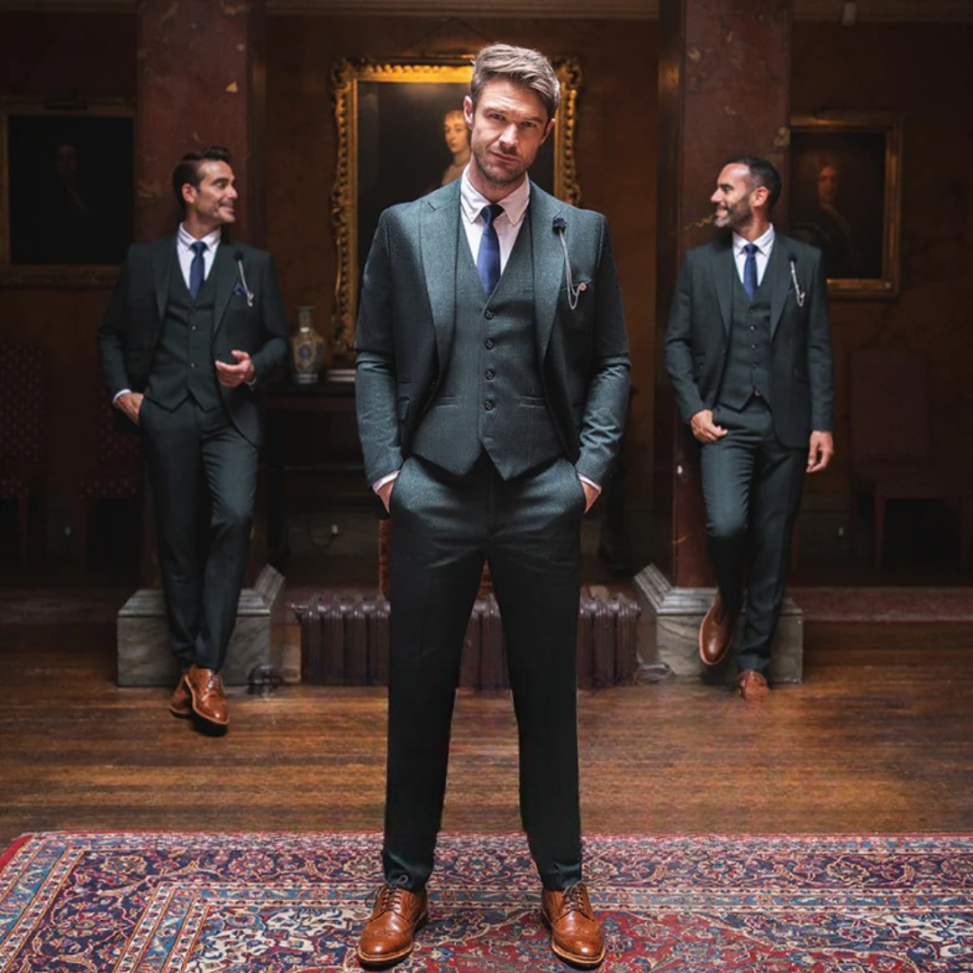 Style Tip: Pair this suit with a crisp white shirt and a silver tie for a polished look that will turn heads at any event. Don’t forget to add a pair of sleek leather shoes to complete your outfit with finesse.