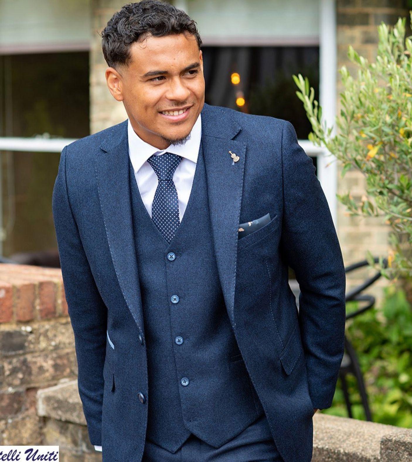 Introducing the Oscar Navy Tweed Suit, a masterclass in refined tailoring and elegance. Crafted to perfection, this timeless suit boasts a luxurious navy tweed that offers both style and sophistication. The suit is designed for those special occasions when you need to make an impression with your impeccable sense of fashion. The distinguished silver and navy lining adds a touch of modern flair, complementing the suit's classic appeal.